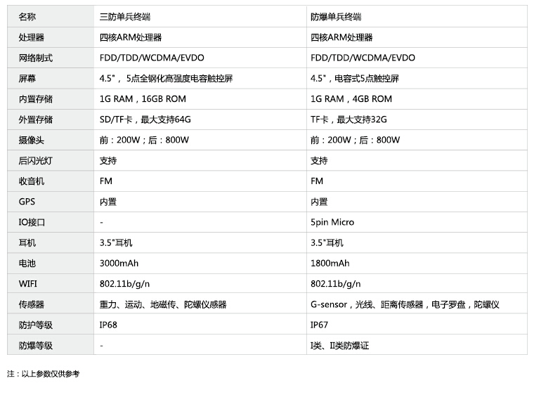 4、防水、防尘设计,IP67、IP68 等三防、防爆等级认证,跌落防护符合 MIL-STD-810G/Method516.6/Procedure IV 的军用保护等级;